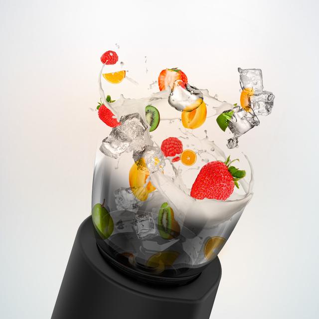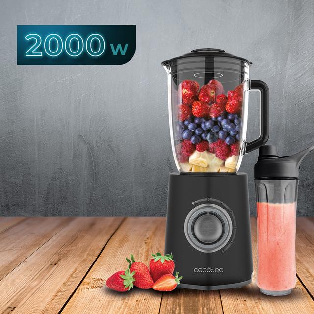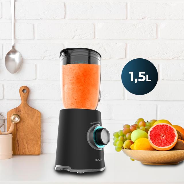 Acabados en acero inoxidable de 2000 W de maxima potencia, con cuchilla con recubrimiento de titanio negro y 1,5 L de capacidad.