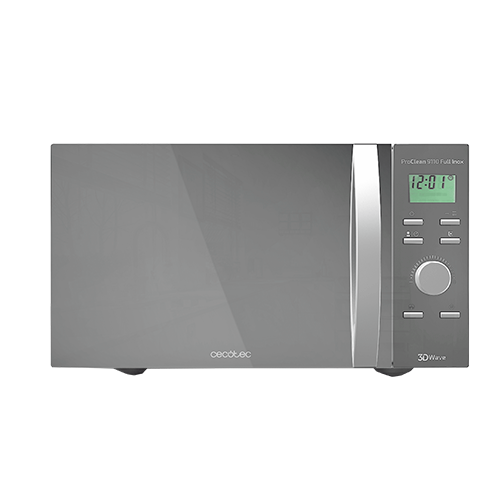 Microondas con Grill ProClean 9110 FullInox. 1000 W, 30 Litros, 5 niveles de Potencia, 8 Programas, Temporizador de 60 mins, Revestimiento Ready2Clean, Diseño frontal de Espejo